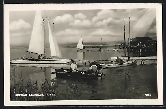 AK Neusiedl am See, Panorama mit Segelbooten