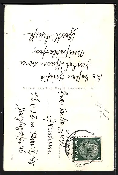 Personenbezogene Daten auf der Rückseite der Karte wurden durch blauen Textmarker unkenntlich gemacht. Die blauen Stellen sind auf die Vorderseite durchgeweicht und wirken sich negativ auf das Postkartenfoto aus