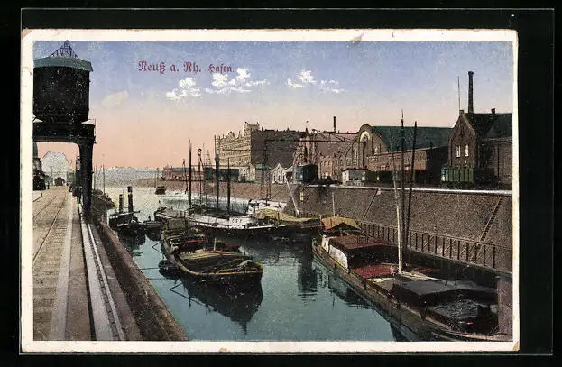 AK Neuss a. Rh., Hafenpartie mit Schiffen