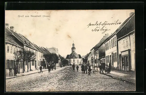 AK Neustadt /Dosse, Strassenpartie mit Blick zur Kirche