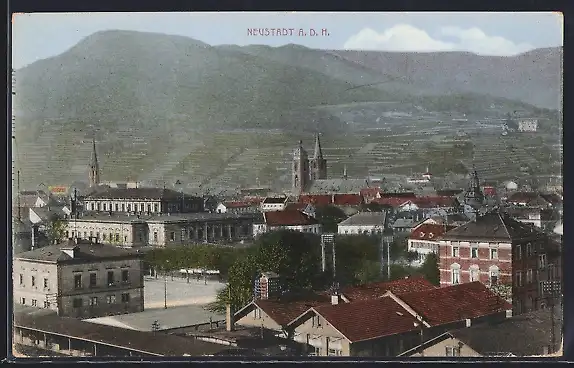 AK Neustadt / Haardt, Teilansicht mit Bergpanorama aus der Vogelschau