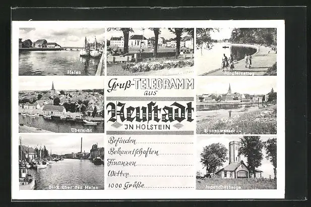 AK Neustadt / Holstein, Hafen, Markt, Jugendherberge