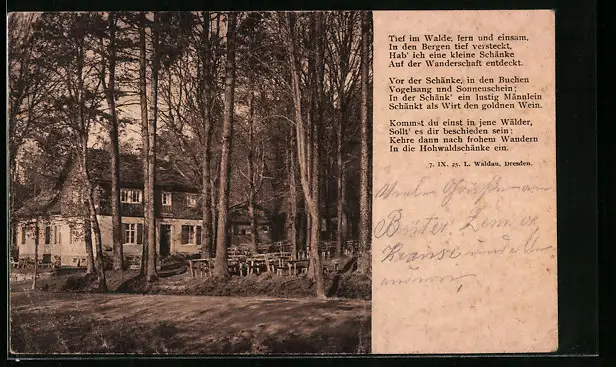 AK Neustadt /Sa., Gasthaus Hohwaldschänke, Gedicht