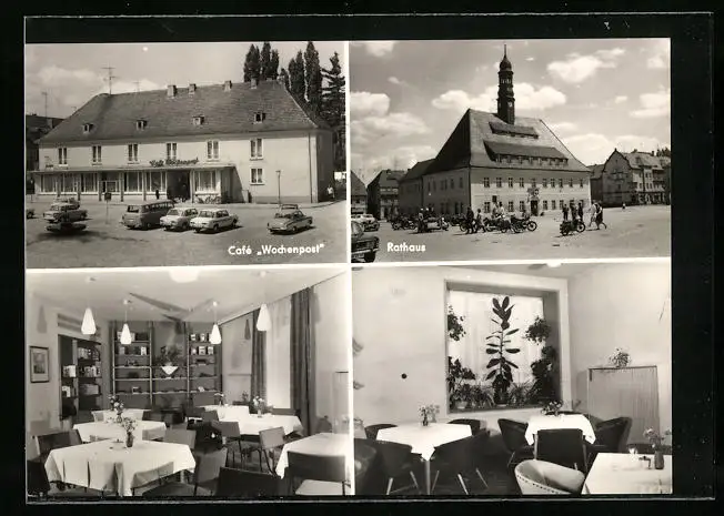 AK Neustadt (Sachs.), Rathaus und Cafè Wochenpost in drei Ansichten