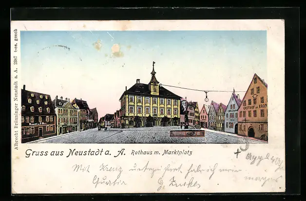 AK Neustadt a. A., Rathaus mit Marktplatz