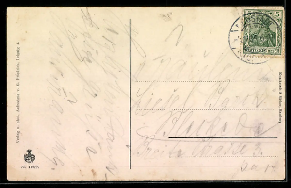 alte Ansichtskarte, gelaufen, Einriss oben mittig, Bugspuren oben links und unten rechts, Abriebspur unten links