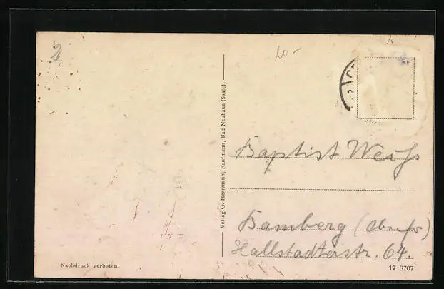 alte Ansichtskarte, gelaufen, Briefmarke entfernt, guter Zustand