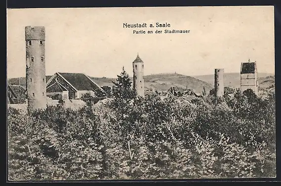 AK Neustadt a. Saale, Partie an der Stadtmauer