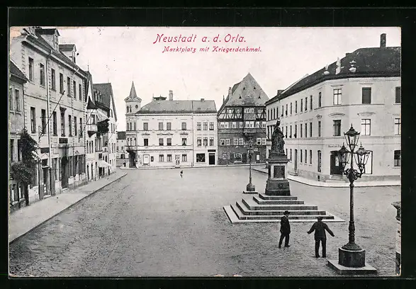 AK Neustadt a. d. Orla, Marktplatz mit Kriegerdenkmal