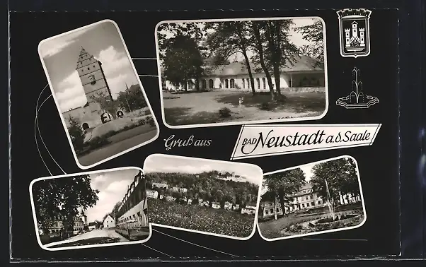 AK Neustadt a. d. Saale, Ortsansicht und vier Ansichten aus der Stadt