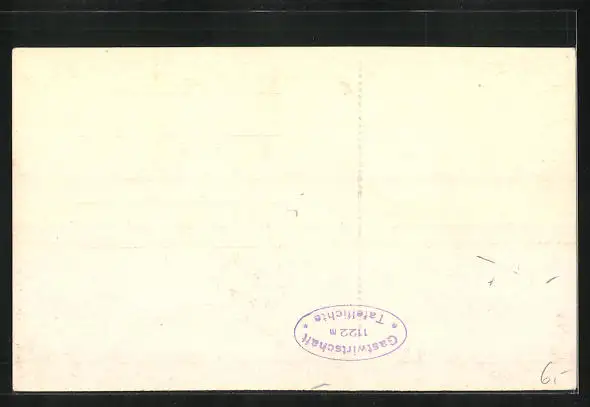 Personenbezogene Daten auf der Rückseite der Karte wurden durch blauen Textmarker unkenntlich gemacht. Die blauen Stellen sind auf die Vorderseite durchgeweicht und wirken sich negativ auf das Postkartenfoto aus