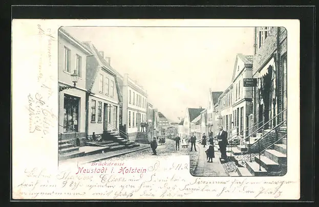 AK Neustadt i. Holst., Brückstrasse mit Geschäften