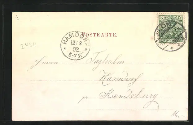 alte Ansichtskarte, gelaufen 1902, guter Zustand