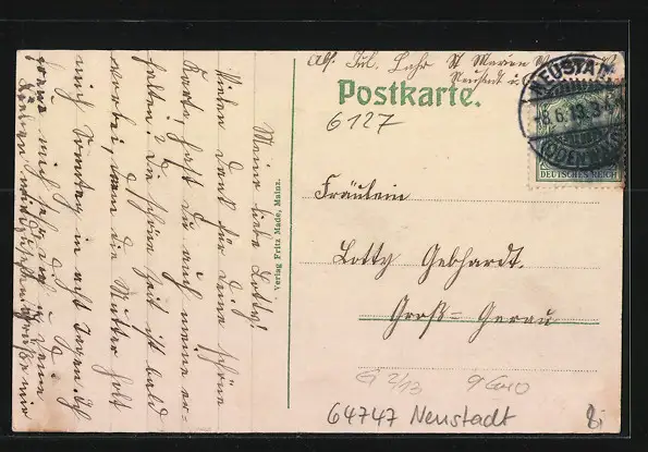 alte Ansichtskarte, gelaufen 1913, guter Zustand
