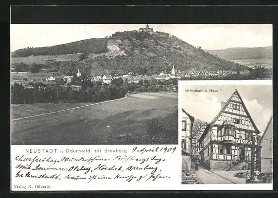 AK Neustadt i. Odenwald, Altdeutsches Haus, Ortsansicht mit Breuberg