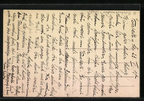 Personenbezogene Daten auf der Rückseite der Karte wurden durch blauen Textmarker unkenntlich gemacht. Die blauen Stellen sind auf die Vorderseite durchgeweicht und wirken sich negativ auf das Postkartenfoto aus