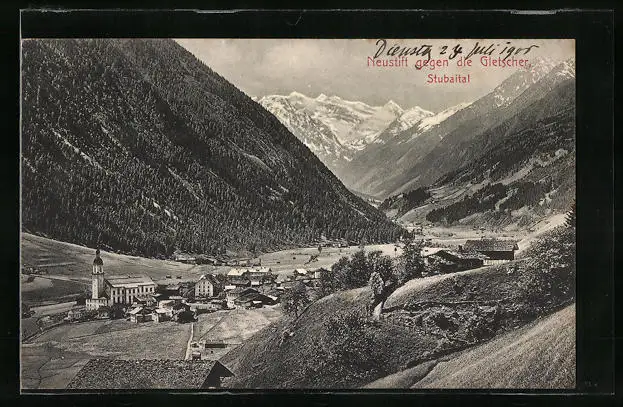 AK Neustift, Ort im Stubaital und Blick in die Gletscher