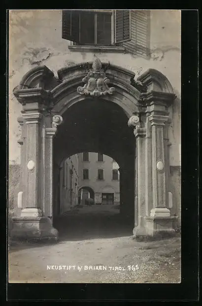 AK Neustift b. Brixen, Blick durch einen Torbogen
