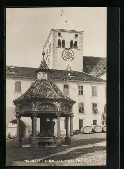 AK Neustift b. Brixen, Ortspartie mit Brunnen
