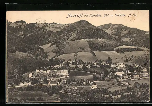 AK Neustift bei Scheibbs, Ortsansicht aus der Vogelschau