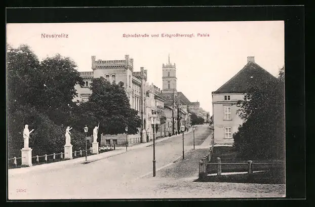 AK Neustrelitz, Schlossstrasse und Erbgrossherzogl. Palais