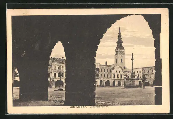 AK Neutitschein, Laubendurchblick auf den Stadtplatz
