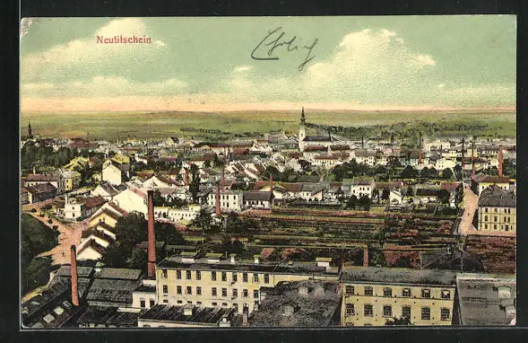 AK Neutitschein, Panorama aus der Vogelschau mit Schornsteinen