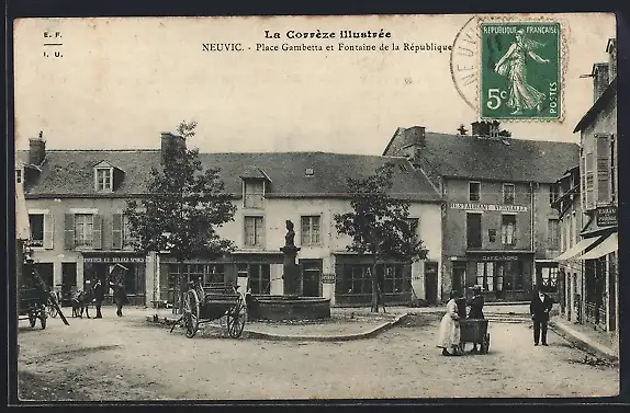 AK Neuvic, Place Gambetta et Fontaine de la République