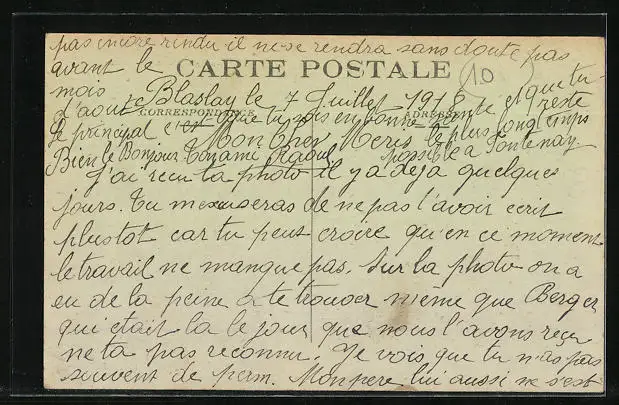 Personenbezogene Daten auf der Rückseite der Karte wurden durch blauen Textmarker unkenntlich gemacht. Die blauen Stellen sind auf die Vorderseite durchgeweicht und wirken sich negativ auf das Postkartenfoto aus