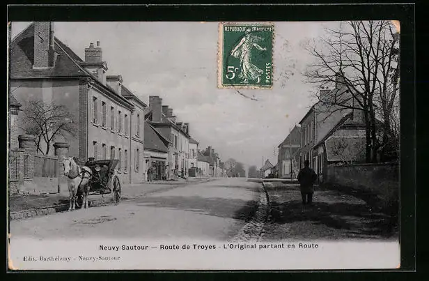 AK Neuvy-Sautour, Route de Troyes - L`Original partant en Route