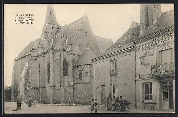 AK Neuvy-le-Roi, Église des XIIe au XVe siècle et bâtiments adjacents