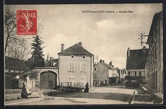 AK Neuvy-sur-Loire, Grande Rue avec habitants et maisons