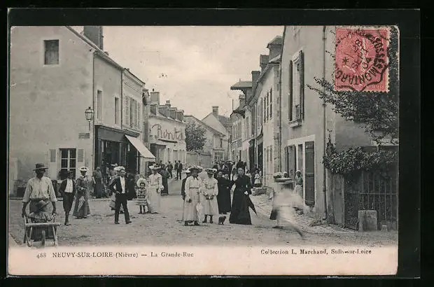 AK Neuvy-sur-Loire, La Grande-Rue, Strassenpartie