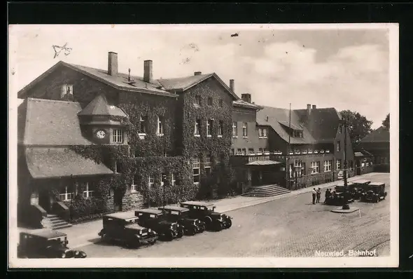 AK Neuwied, Bahnhof mit Autos