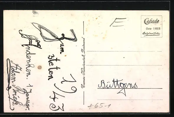 alte Ansichtskarte, ungelaufen, rückseitig Klebe- und Papierreste, guter Zustand