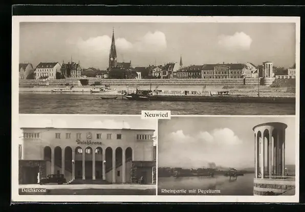 AK Neuwied, Deichkrone, Rheinpartie mit Pegelturm