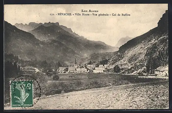 AK Névache, Ville Haute, Vue générale, Col de Buffére