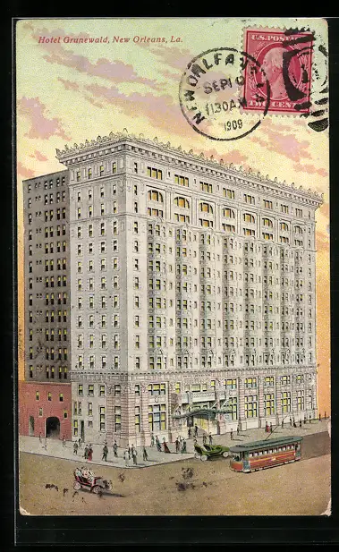 AK New Orleans, LA, Hotel Grunewald, Strassenbahn