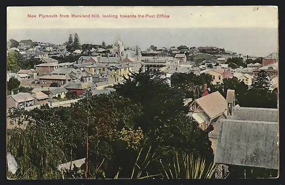 AK New Plymouth, General view from Marsland Hill looking towards the Post Office
