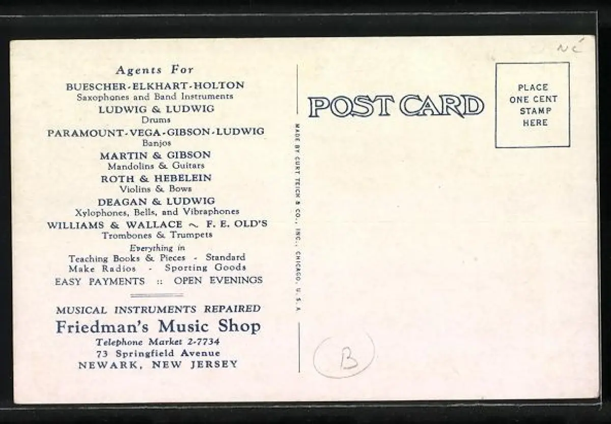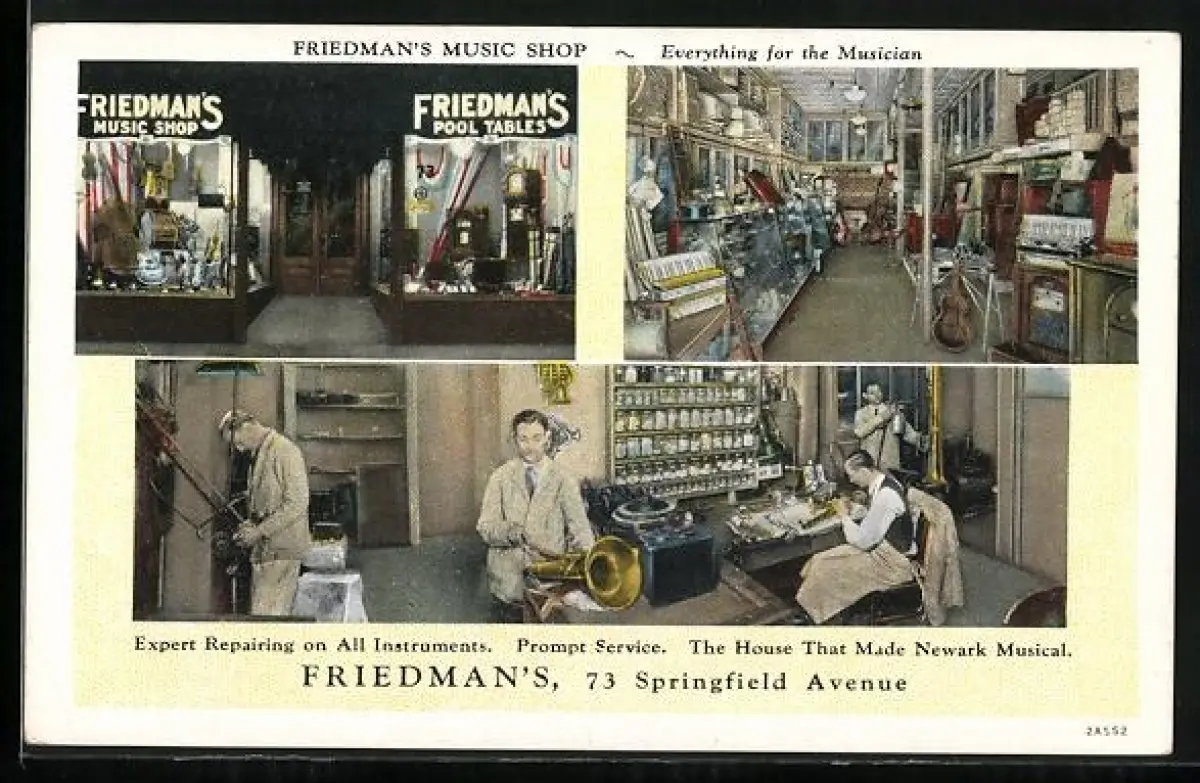 AK Newark, NJ, Friedman`s Music Shop, Springfield Avenue 73, Aussen- u. Innenansichten