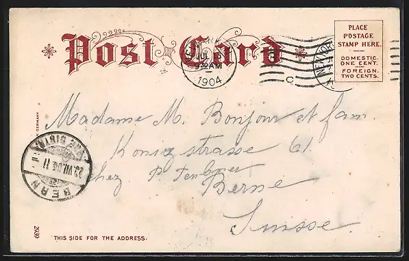 gelaufen 1904, Briefmarke entfernt, Stempelspur, guter Zustand