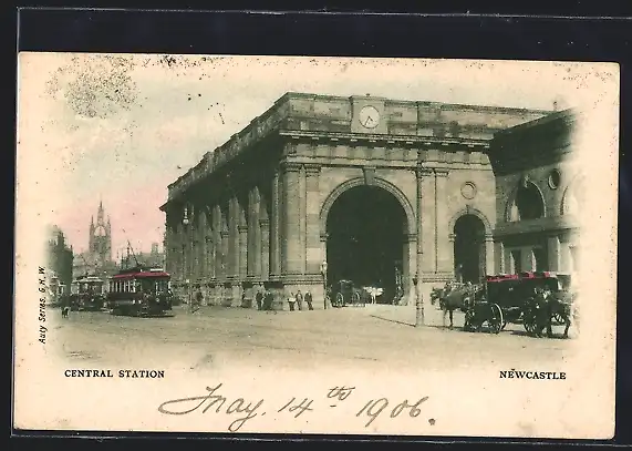 AK Newcastle, Central Station, Strassenbahn