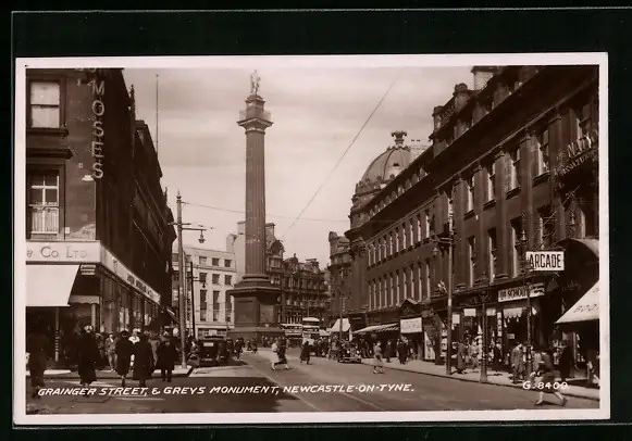 AK Newcastle-on-Tyne, Grainger Street & Greys Monument