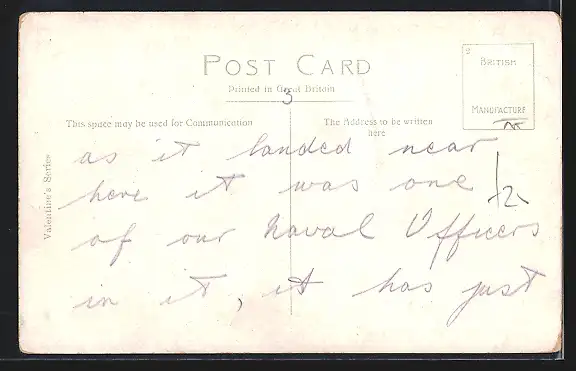 Personenbezogene Daten auf der Rückseite der Karte wurden durch blauen Textmarker unkenntlich gemacht. Die blauen Stellen sind auf die Vorderseite durchgeweicht und wirken sich negativ auf das Postkartenfoto aus