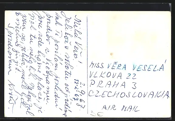 Personenbezogene Daten auf der Rückseite der Karte wurden durch blauen Textmarker unkenntlich gemacht. Die blauen Stellen sind auf die Vorderseite durchgeweicht und wirken sich negativ auf das Postkartenfoto aus