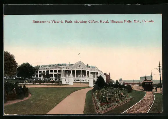 AK Niagara Falls /Ont., Entrance to Victoria Park showing Clifton Hotel