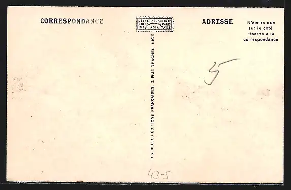 Personenbezogene Daten auf der Rückseite der Karte wurden durch blauen Textmarker unkenntlich gemacht. Die blauen Stellen sind auf die Vorderseite durchgeweicht und wirken sich negativ auf das Postkartenfoto aus