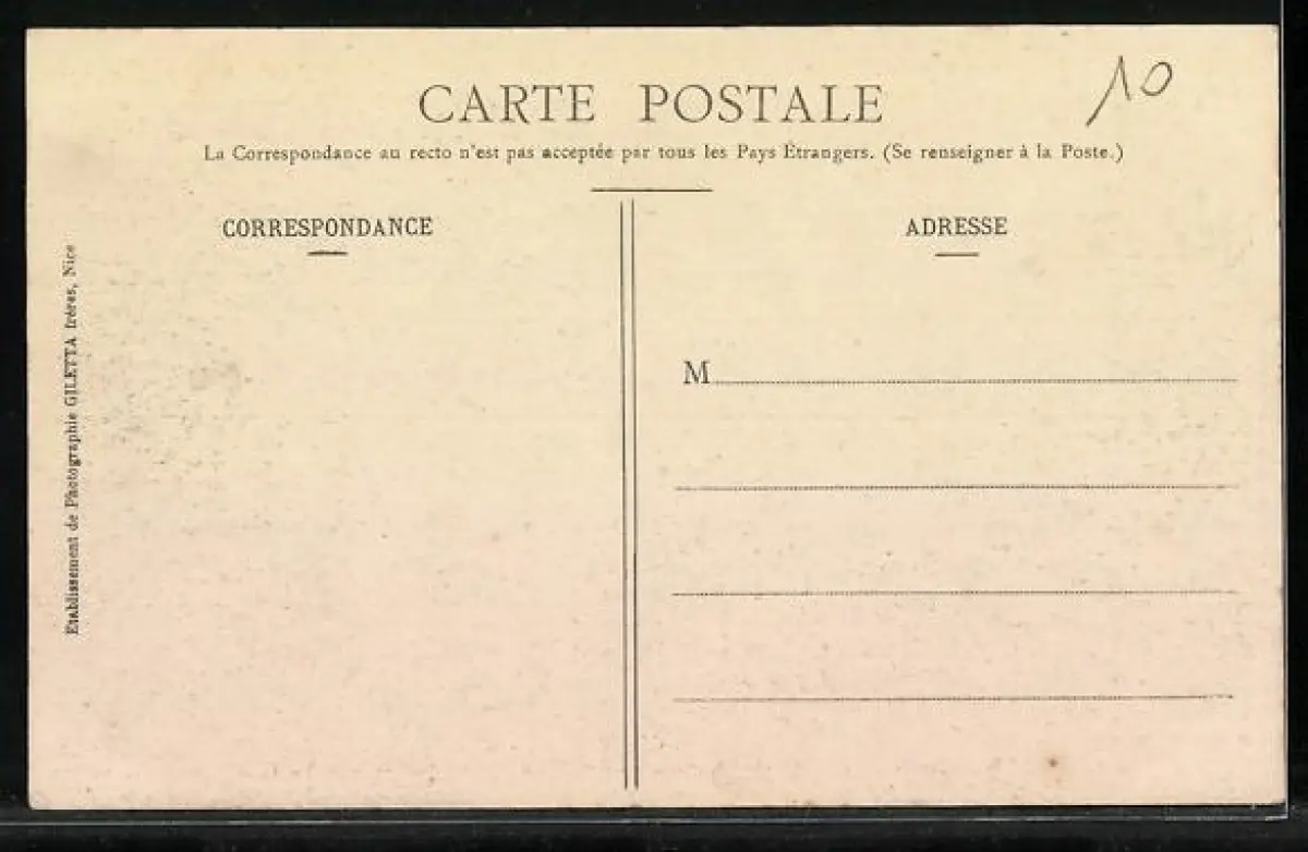 Personenbezogene Daten auf der Rückseite der Karte wurden durch blauen Textmarker unkenntlich gemacht. Die blauen Stellen sind auf die Vorderseite durchgeweicht und wirken sich negativ auf das Postkartenfoto aus