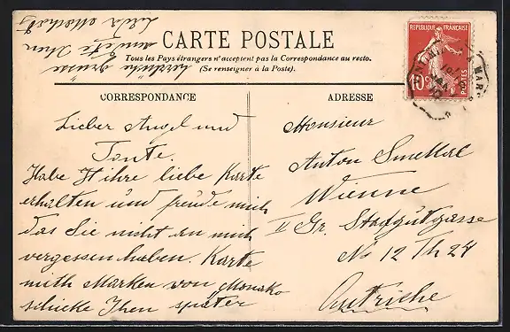 alte Ansichtskarte, gelaufen 1910, Stempelspur, guter Zustand