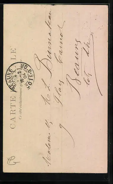 Personenbezogene Daten auf der Rückseite der Karte wurden durch blauen Textmarker unkenntlich gemacht. Die blauen Stellen sind auf die Vorderseite durchgeweicht und wirken sich negativ auf das Postkartenfoto aus